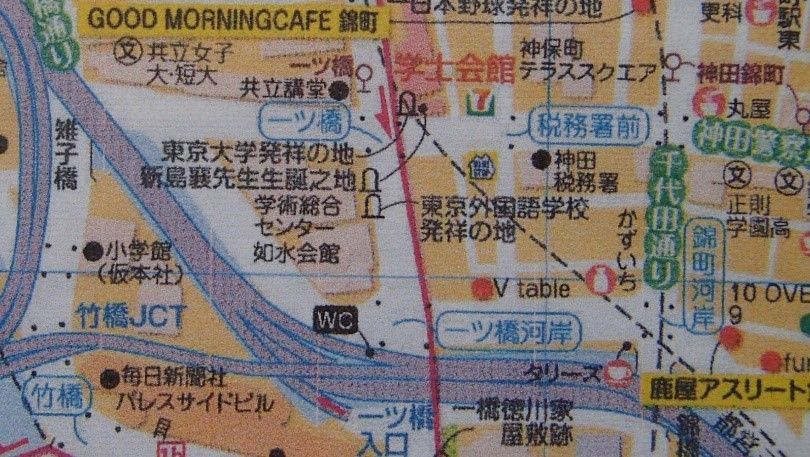 一ツ橋徳川家屋敷跡を後に、一ツ橋を渡って北に向かって歩いていくと、いろんな学校の発祥の地碑が建っている界隈となる。 この辺りは、東京の学問の発祥の地の一つでもある。 まず、東京外国語大学の..