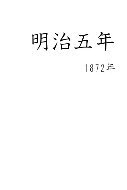 明治五年 壬申正月 小丙戌二月 大乙卯三月 小乙酉四月 大甲寅五月 大甲申六月 小甲寅七月 大癸未八月 大癸丑九月 小癸未十月 大壬子十一月 小壬午十二月 大辛亥 和暦とは元号とそれに続く年数によっ..