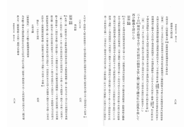 孝明天皇紀 第2 孝明天皇紀 巻2 804頁 安政五年三月二十日の条 二十日丙申堀田正睦等を召て更に前日の朝旨を宣し猶三家以下諸大名の意見を奏して再ひ勅裁を請はしむ 「孝明天皇紀」は天保..