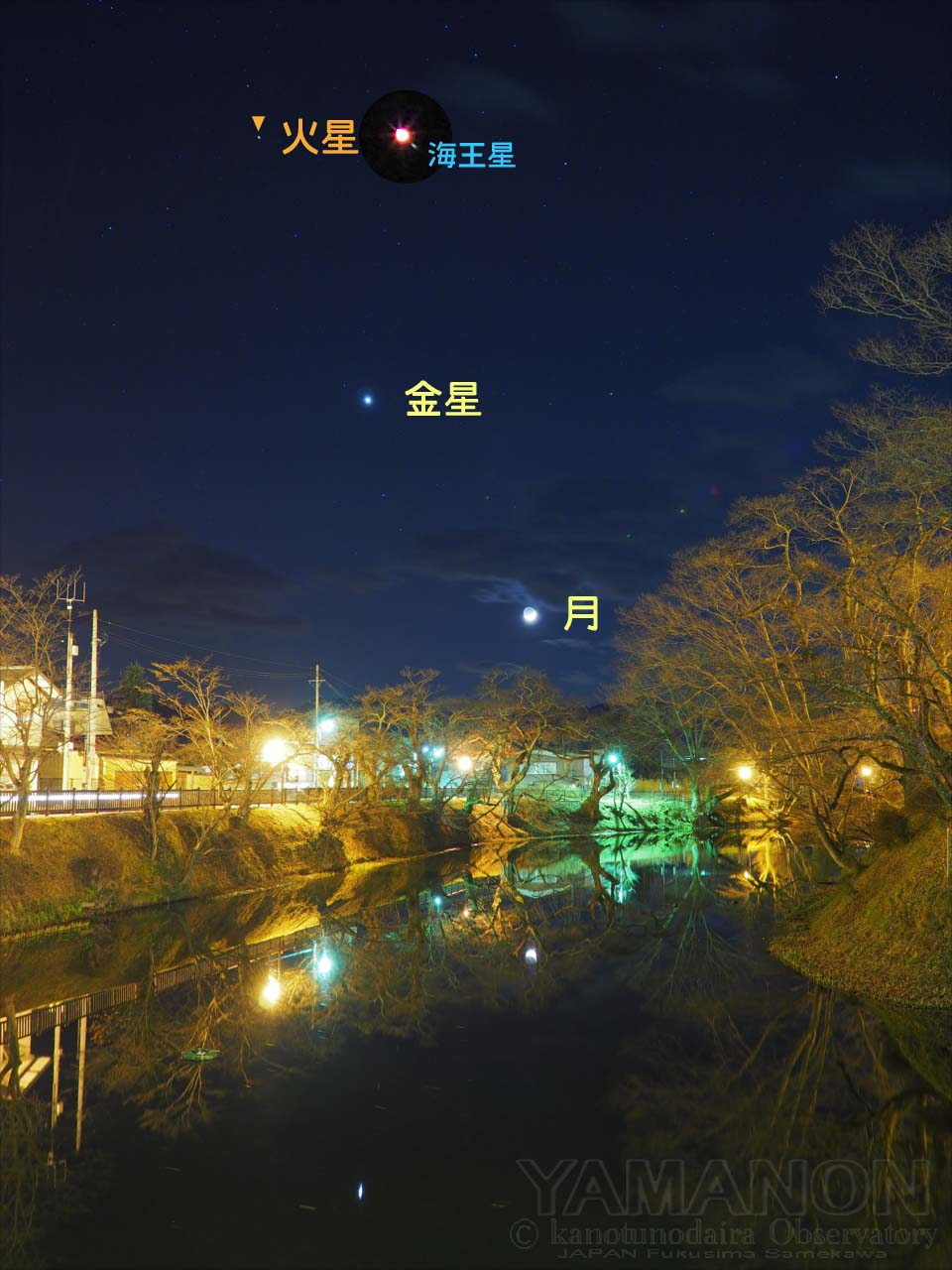 今夕(01/02)は月と金星がきれいに並んで 星空のウインクみたいでした。 明日(1/3)は 今日金星の上で輝いていた火星と並びます。 前日に大接近していた海王星はちょっと離れてまし..
