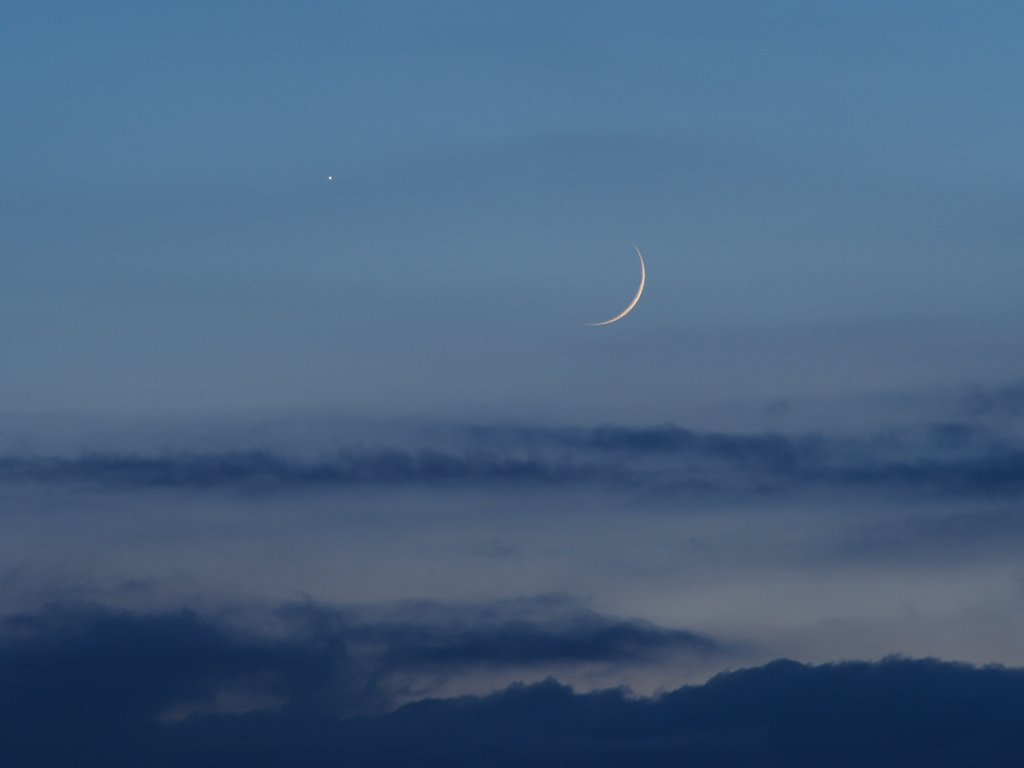 元旦の夕暮れ。 月-金星-火星とほぼ等間隔に並んでいました。 火星の近くには海王星が大接近していました。 月は明日の2日は金星と 3日は火星と並びます。 どのくらい近づ..