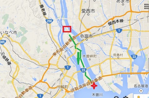 赤四角の場所が木曽川文庫で、木曽川と長良川の間の中洲.. » more