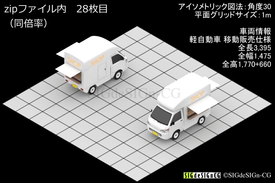 ギャラリーショップ詳細をみる アイソメトリック図法を用いた、PNG透過マップ仕様の、 軽トラックベースの移動販売車です。 キッチンカーなどでお馴染みのものです。 このセットでは、何のお.. » more