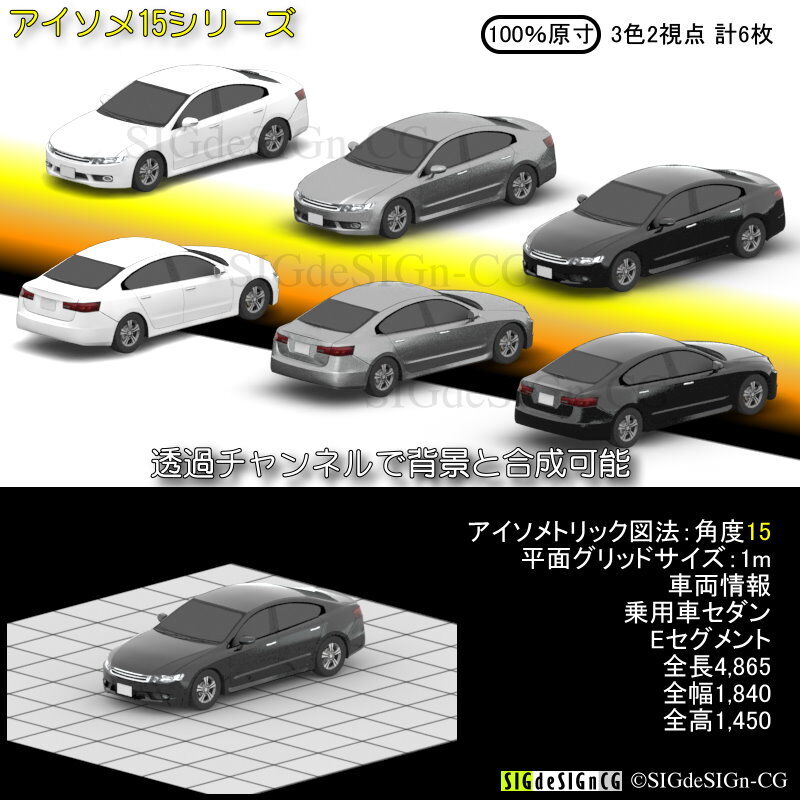 ギャラリーショップ詳細をみる アイソメトリック図法15度仕様を用いた、PNG透過マップ仕様の、 乗用車セダン Eセグメント白銀黒仕様です。 [アイソメ15と30の違い] 一般的な3..