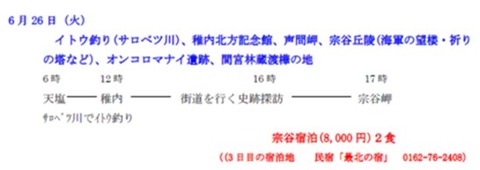 今日の旅、6月26日(火)の旅の日程は以下のとおり。 去年の9月にも稚内に来たのだが、その時は台風15号に追われてのまことに不遇な旅だったので、見落とした場所が沢山出来た。 今年の旅はそれを補..